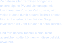 In der Grundbesetzung besteht die Tanz- & Showband immer aus mindestens zwei Musiker. Ob mit Keyboards oder Gitarrenbegleitung ist die musikalische Basis perfekt auf jedes Publikum und Veranstaltungsgröße abgestimmt. Gerne spielen wir auch in größeren Besetzungen. Sprechen Sie uns einfach an.